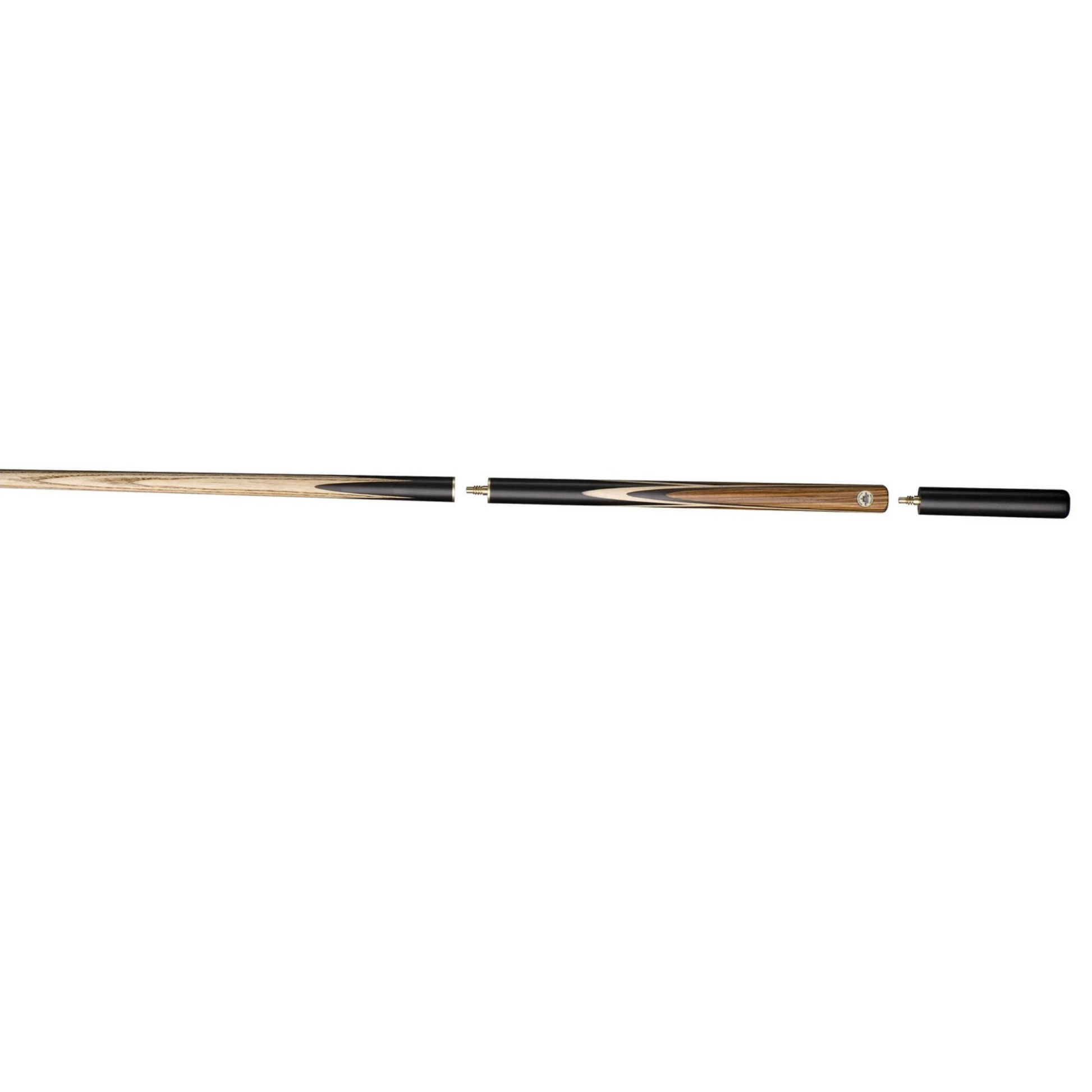 The cue includes a solid brass “Quick Action” joint placed 16″ from the butt end (typical 42″ shaft), giving a true full‑sized cue feel in a ¾‑joint format. It’s topped with a high‑quality ElkMaster or 9.5–10 mm tip on a brass ferrule, ensuring excellent cue ball control for both snooker and pool.